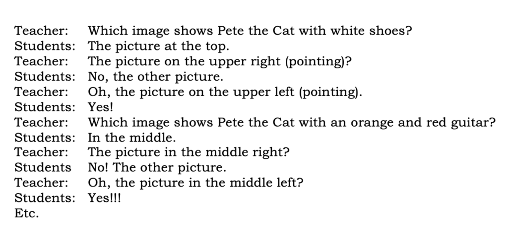 1. For yourself, identify the academic language you want your students to be familiar with before you begin (we follow the philosophy that until a child is 7-years-old, reading skills ought not to be stressed, so this activity does not include the students identifying letters or words.)